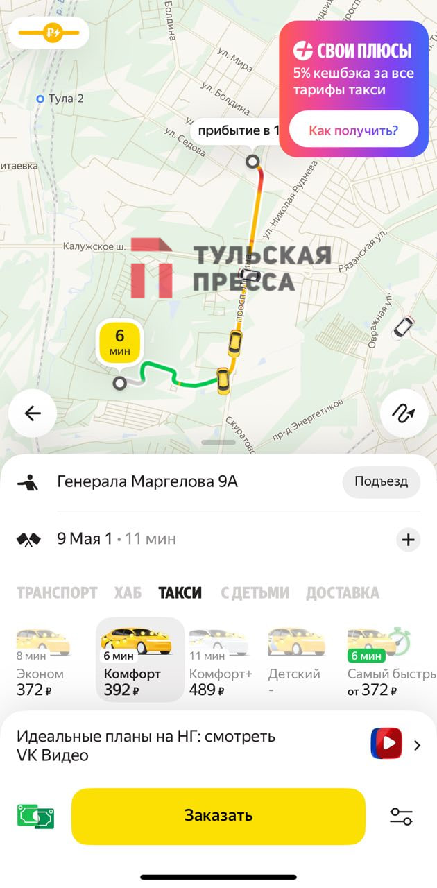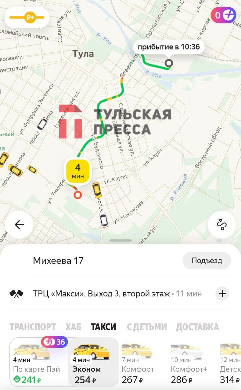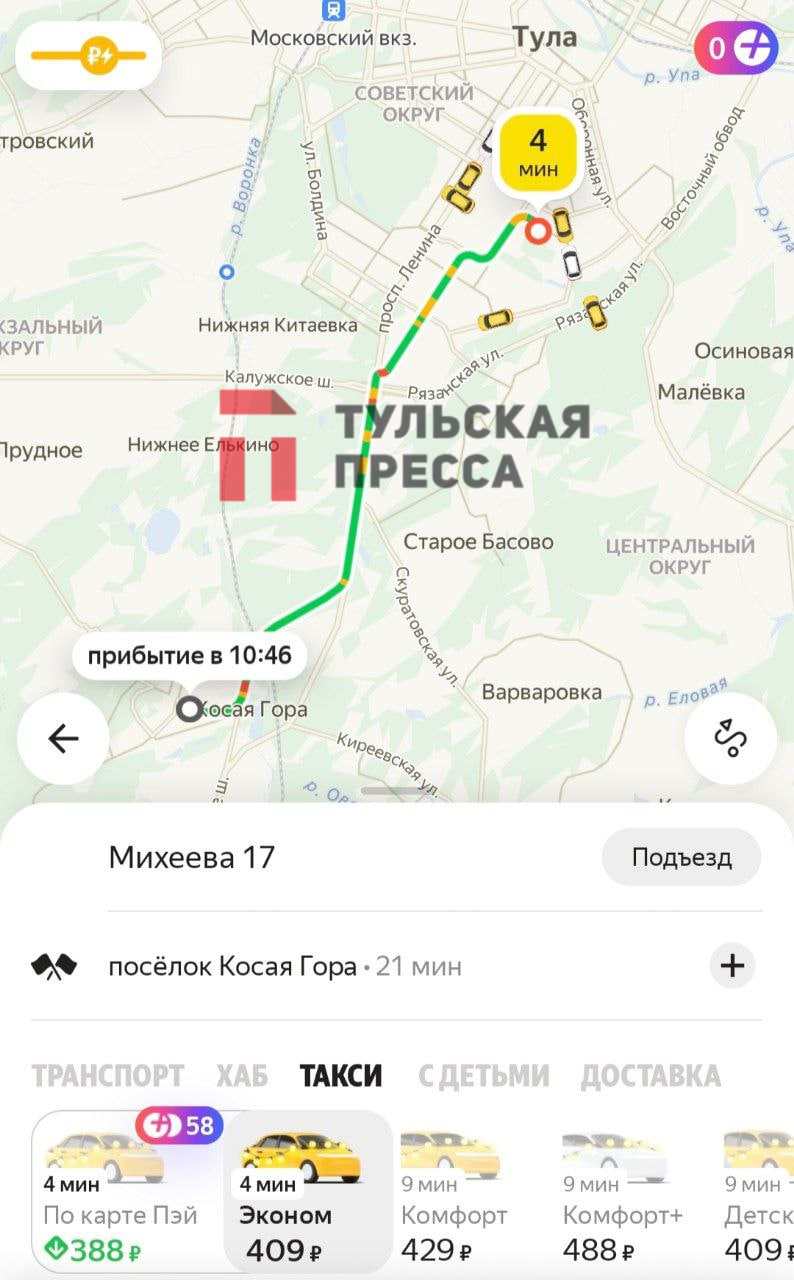 Жители Тулы обратили внимание на высокие цены в такси перед новогодними праздниками. В соцсетях был опубликован скрин из приложения, где поездка от Косой Горы до Московского вокзала обойдется в тысячу и более рублей.