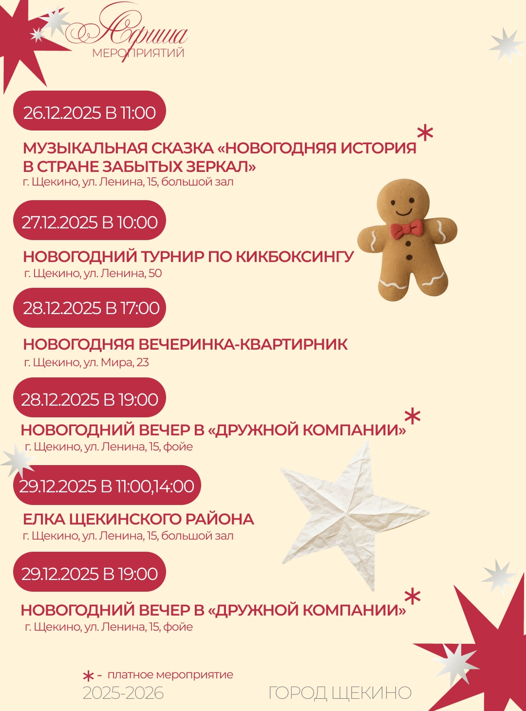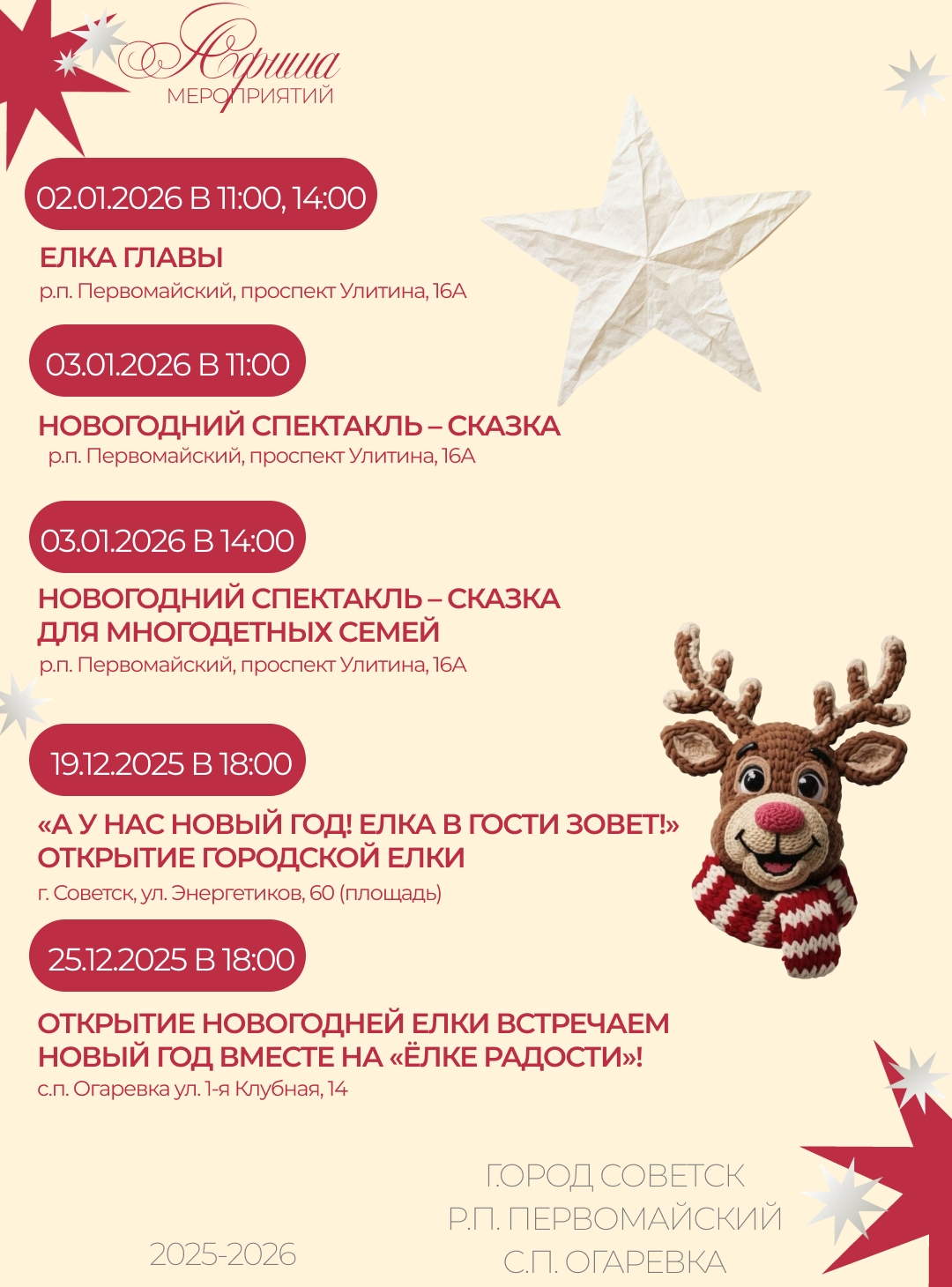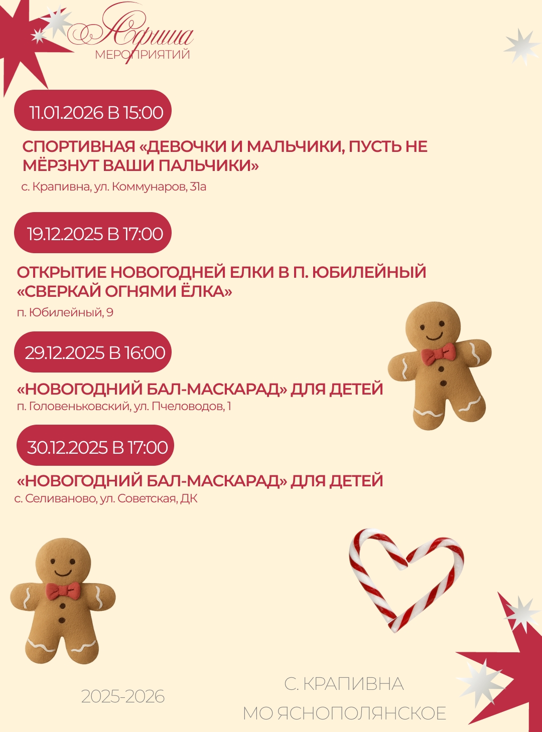 Администрация также опубликовала полную афишу мероприятий на ближайшие новогодние праздники. К участию приглашаются все желающие.