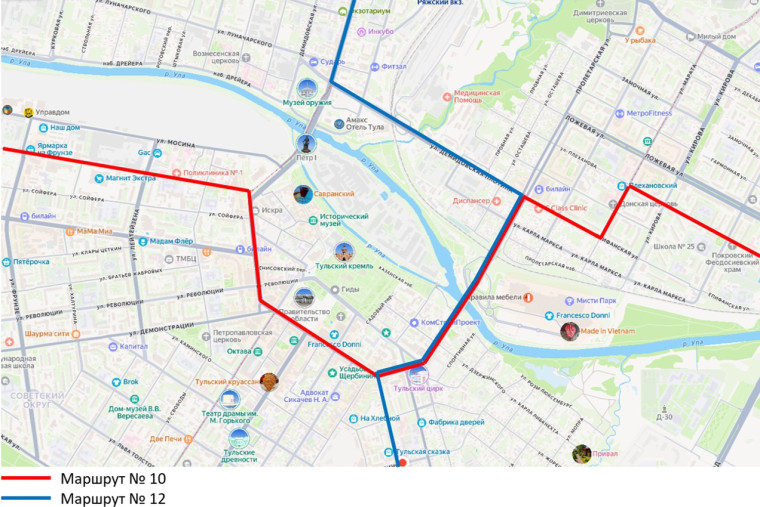 - пути на улицах Октябрьская и Советская (от Музея оружия до улицы Мосина).