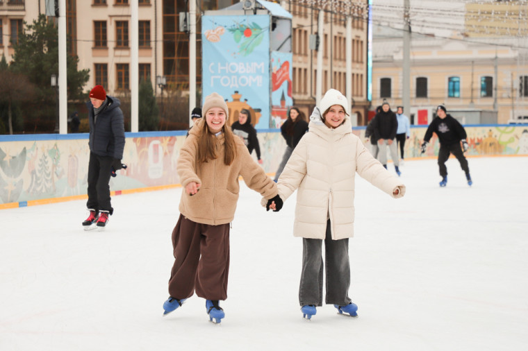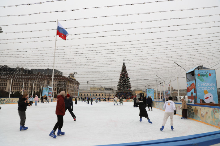 Как и в прошлом году, установлены две ледовые площадки: основной лед и детский лед. Каток оборудован раздевалками и прокатом коньков. Во время сеанса массового катания на основном льду одновременно смогут находиться 250 человек, на детском – 100. Вход осуществляется по билетам, которые предоставляются БЕСПЛАТНО.