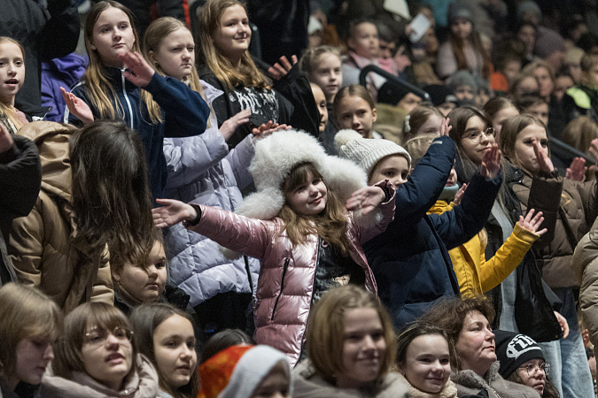 Мероприятие собрало более 1800 гостей, среди которых присутствовали дети из Курской и Белгородской областей, сыновья и дочки участников специальной военной операции, а также молодые таланты, отличившиеся в сфере культуры и спорта. Перед выступлением артистов малыши смогли поучаствовать в веселых играх с Дедом Морозом и Снегурочкой.