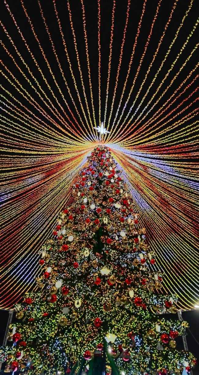 Ель стала центральным элементом новогоднего пространства и встречает гостей яркой иллюминацией и праздничной атмосферой.