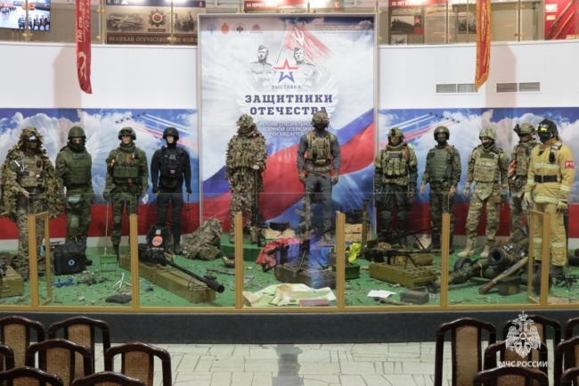В выставочном комплексе представлены 11 комплектов снаряжения военнослужащих и сотрудников специальных подразделений, а также более 300 экспонатов, часть из которых передана участниками специальной военной операции.
