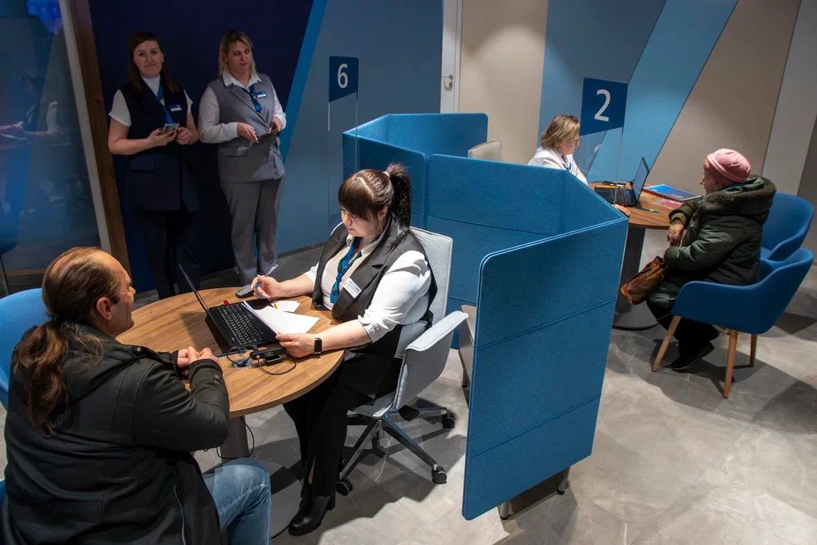 Внутреннее пространство офиса организовано без стоек и перегородок, для клиентов комфортные зоны обслуживания с мягкой мебелью. В новом офисе вы можете получить весь комплекс банковских услуг. Специалисты с ноутбуками сами подходят к посетителям и помогают оформить нужные продукты. Подписать документы клиенты теперь могут в онлайн-банке, воспользовавшись бесплатным Wi-Fi. Для проведения самостоятельных операций доступны банкоматы с поддержкой операций по QR-коду.