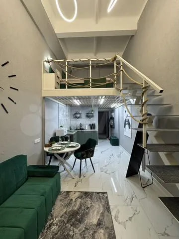 На Московской улице — сразу два похожих объекта с потолками 5 метров: оба расположены в одном и том же доме. Студии площадью 35 квадратных метра, двухуровневые, с зонированием и дизайнерским ремонтом. В одной — даже умный унитаз и просторная гардеробная. Обе продаются по 5,15 млн рублей. Подходят и для жизни, и для аренды: в объявлении как преимущество отметили близость Центрального парка.