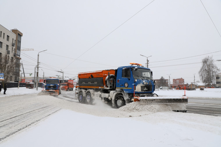 Сегодня в уборке города задействовано более 300 единиц техники, остановочные площадки и пешеходные переходы расчищают 300 рабочих. На очистку улиц направлено семь колонн КДМ.