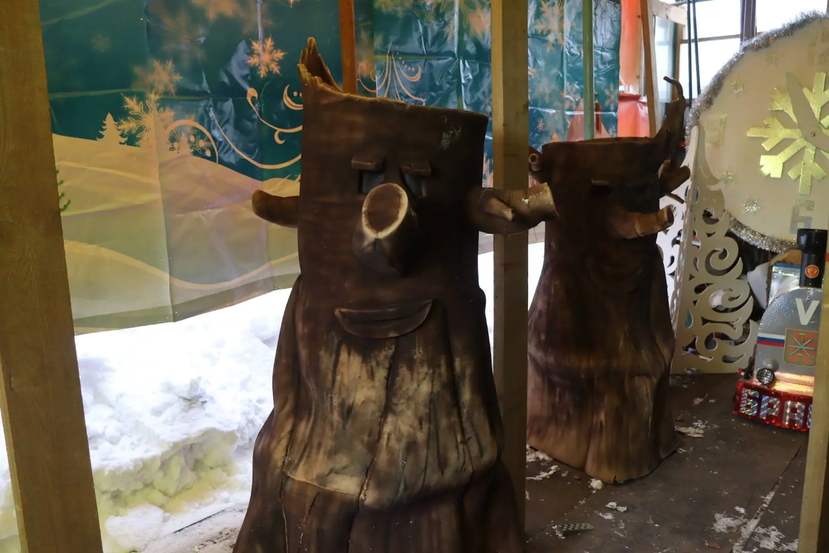 Рядом с ДК есть парк, где Александр поставил самодельные фигуры: ворона и лиса, жираф, добрый молодец, девица-красавица. Все скульптуры были сделаны руками из дерева, но люди этого не оценили: их начали ломать.