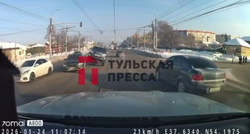 Днем 24 января на Пролетарском мосту в Туле произошло ДТП. Одним из участников столкновения стал минивэн. По словам очевидцев, он на всей скорости врезается в другой автомобиль и буквально подскакивает на дороге.