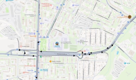 Ограничения будут действовать с 23:00 до 06:00 в период с 23 по 26 января. В это время движение всех видов транспорта под путепроводом будет закрыто.