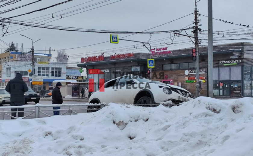 В Туле на пересечении Октябрьской улицы и улицы Токарева произошла серьезная авария: напротив Центра образования № 5 столкнулись BMW и Nissan. Последний, как видно на кадрах, от удара вылетел на сугроб и сильно повредил переднюю часть.