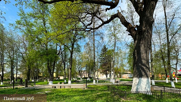 Тут же находится дуб — участник Всероссийской программы «Деревья — памятники живой природы». В этом году дереву исполнится 282 года, и оно официально включено в Национальный реестр старовозрастных деревьев.
