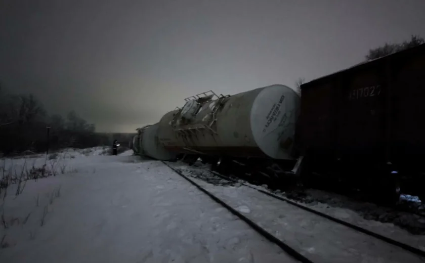 По словам губернатора, предварительная причина схода вагонов – падение давления в тормозной магистрали одного из вагонов.