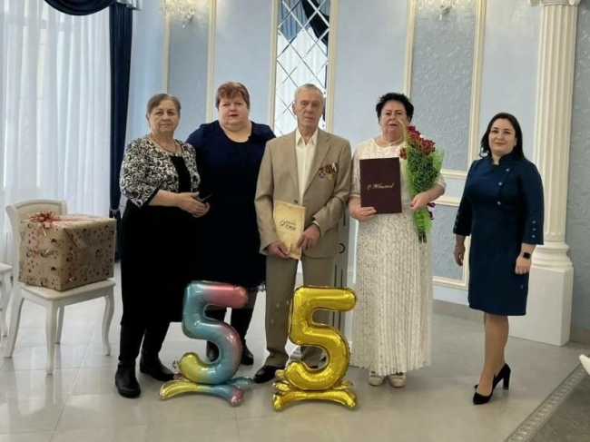 А в Донском чествовали Владимира Федоровича и Любовь Дмитриевну Снитко, которые прожили вместе 55 лет. Супруги отметили изумрудную свадьбу и признались, что секрет их крепкого союза — любовь, уважение и взаимопонимание.