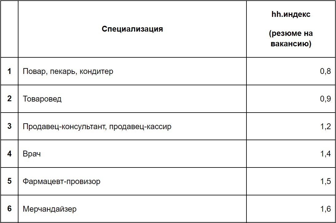 Аналитики платформы онлайн-рекрутинга hh.ru выяснили, какие специальности в Тульской области стали самыми дефицитными по итогам декабря. В топ-5 попали повара и пекари (0,8 резюме на вакансию), товароведы (0,9), продавцы-консультанты (1,2), врачи (1,4) и провизоры (1,5). При этом норма — от четырех до восьми резюме на вакансию.