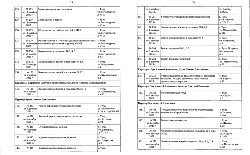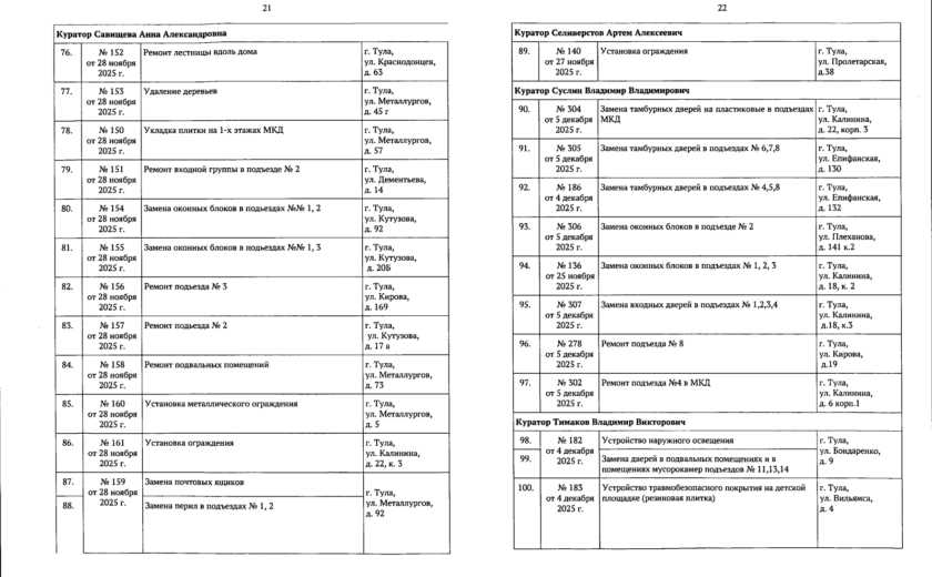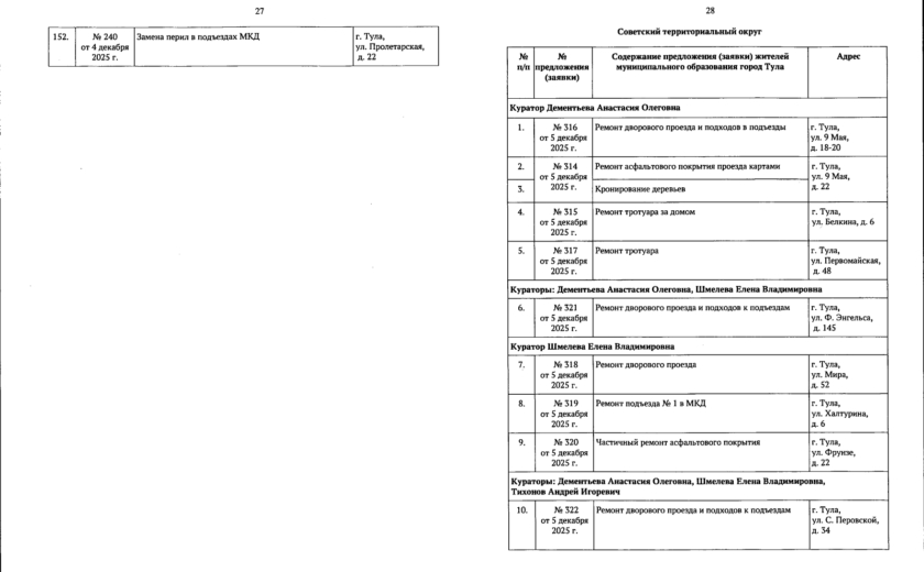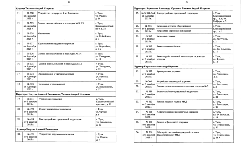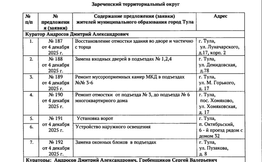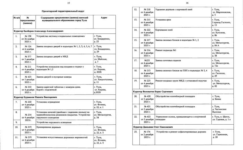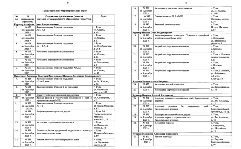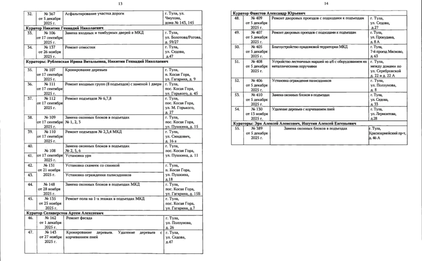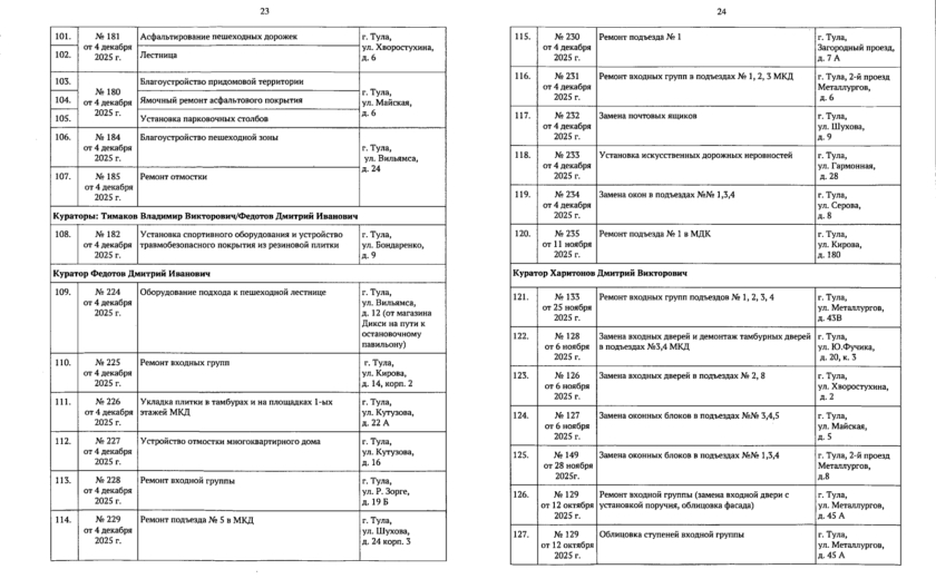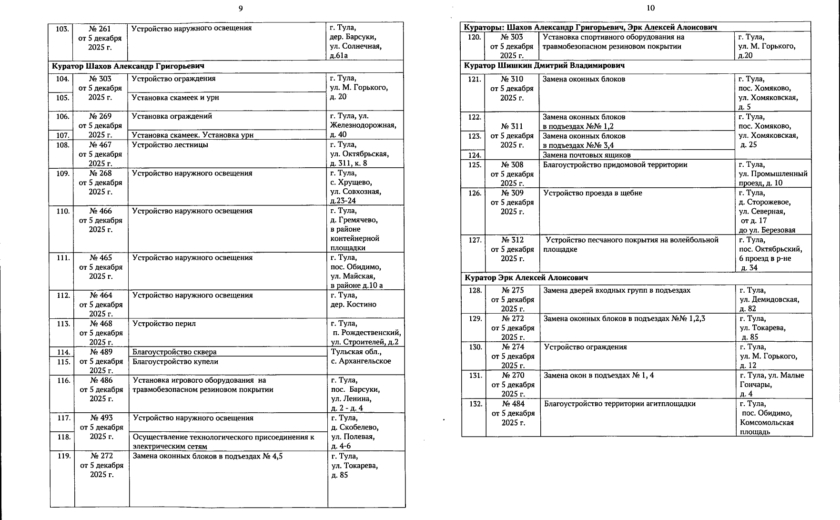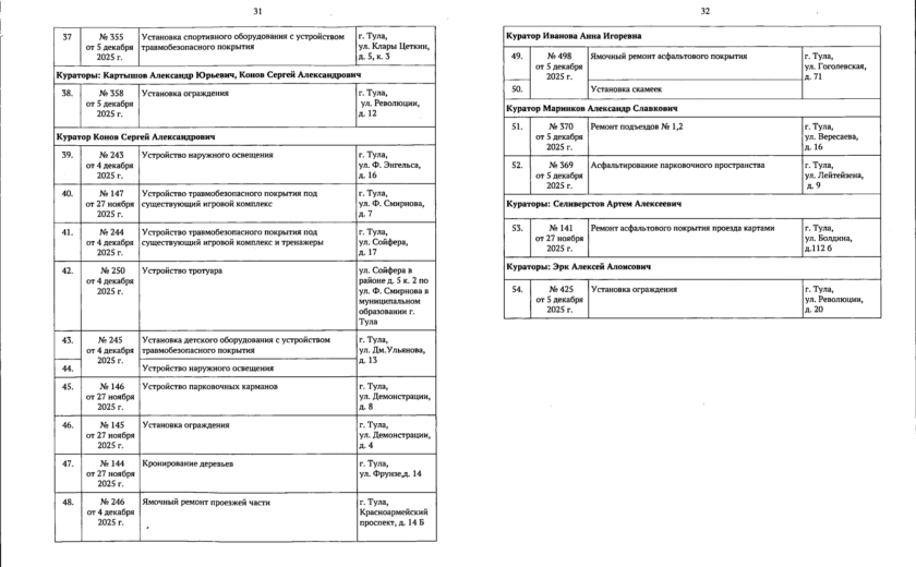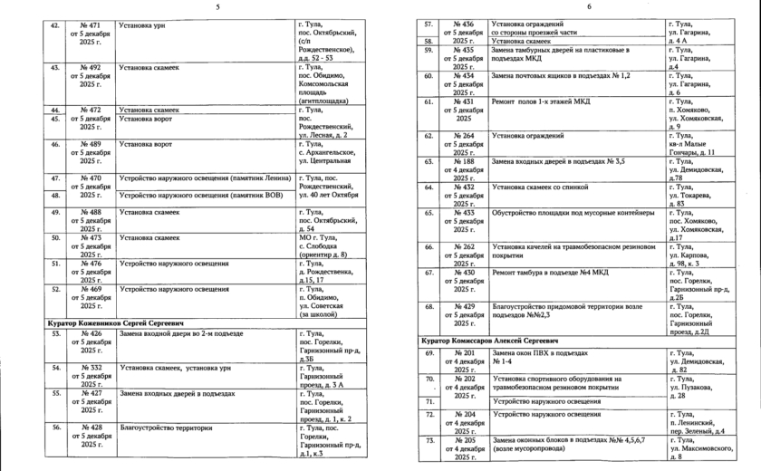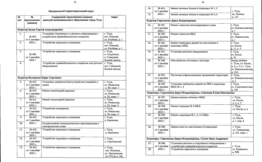 В галерее — список одобренных заявок, адреса и кураторы из числа депутатов городской Думы.