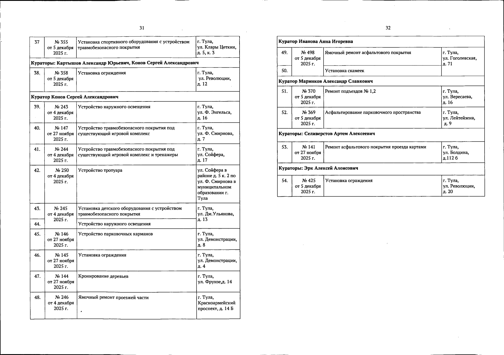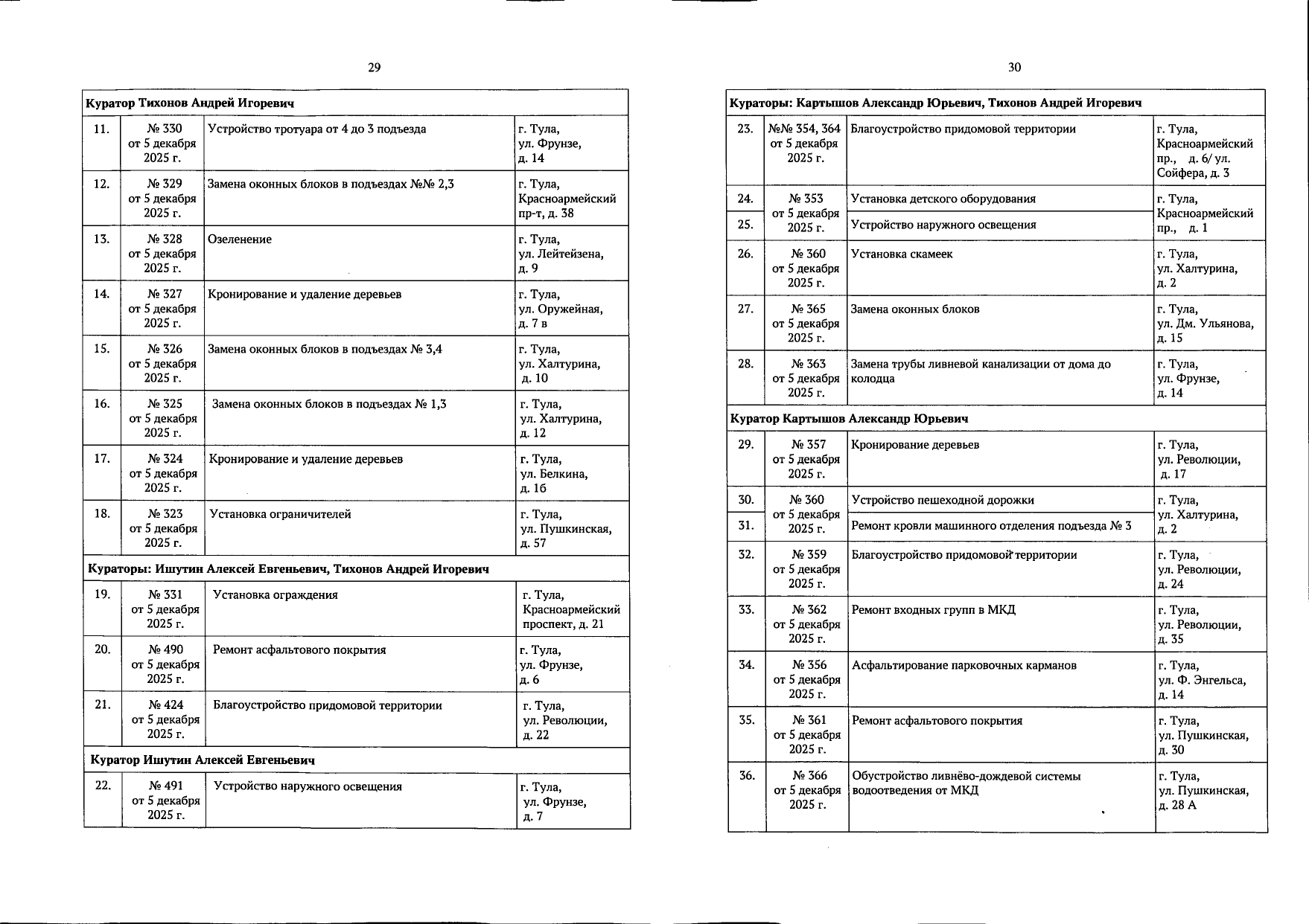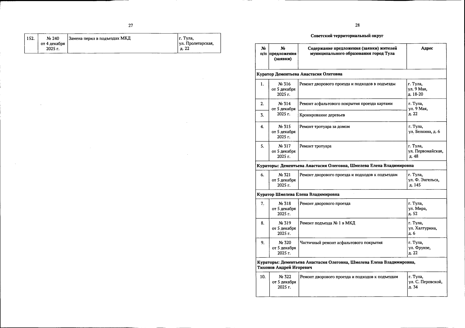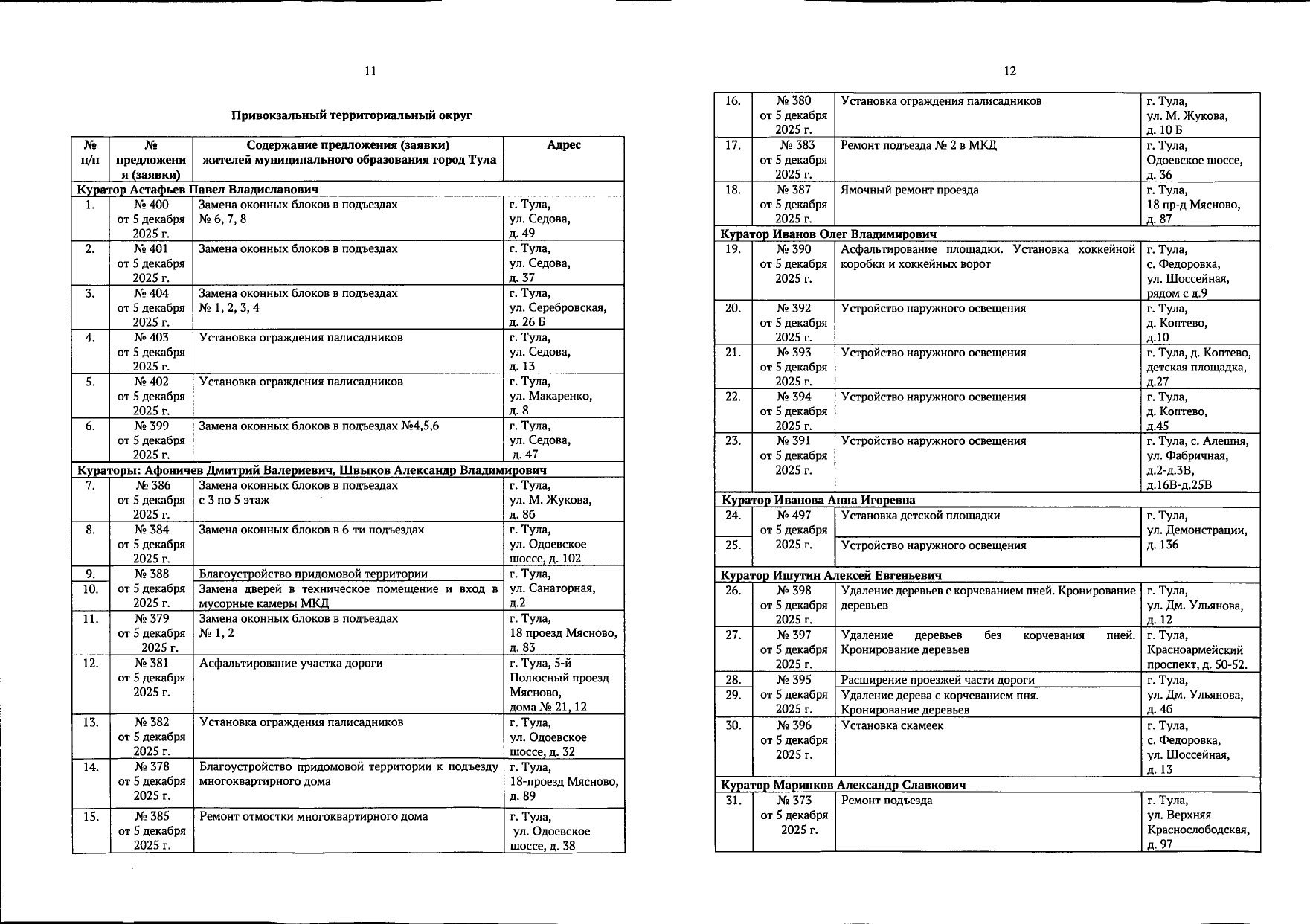 В галерее — список одобренных заявок, адреса и кураторы из числа депутатов городской Думы.