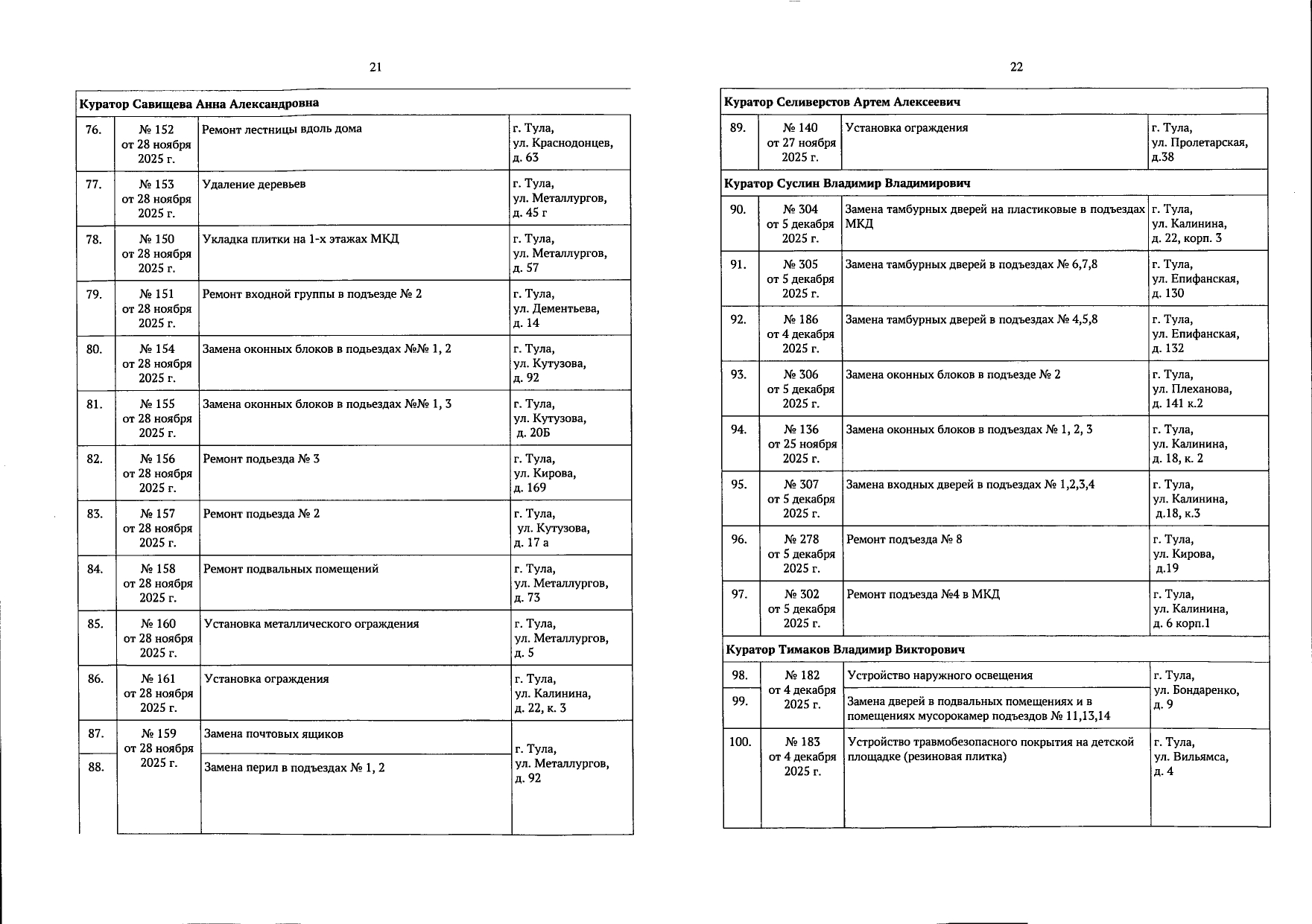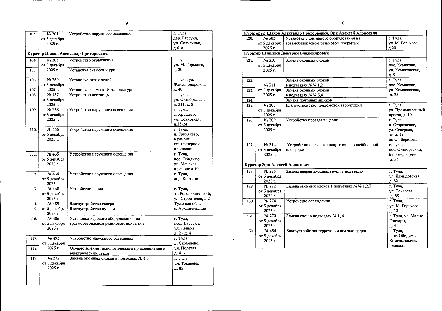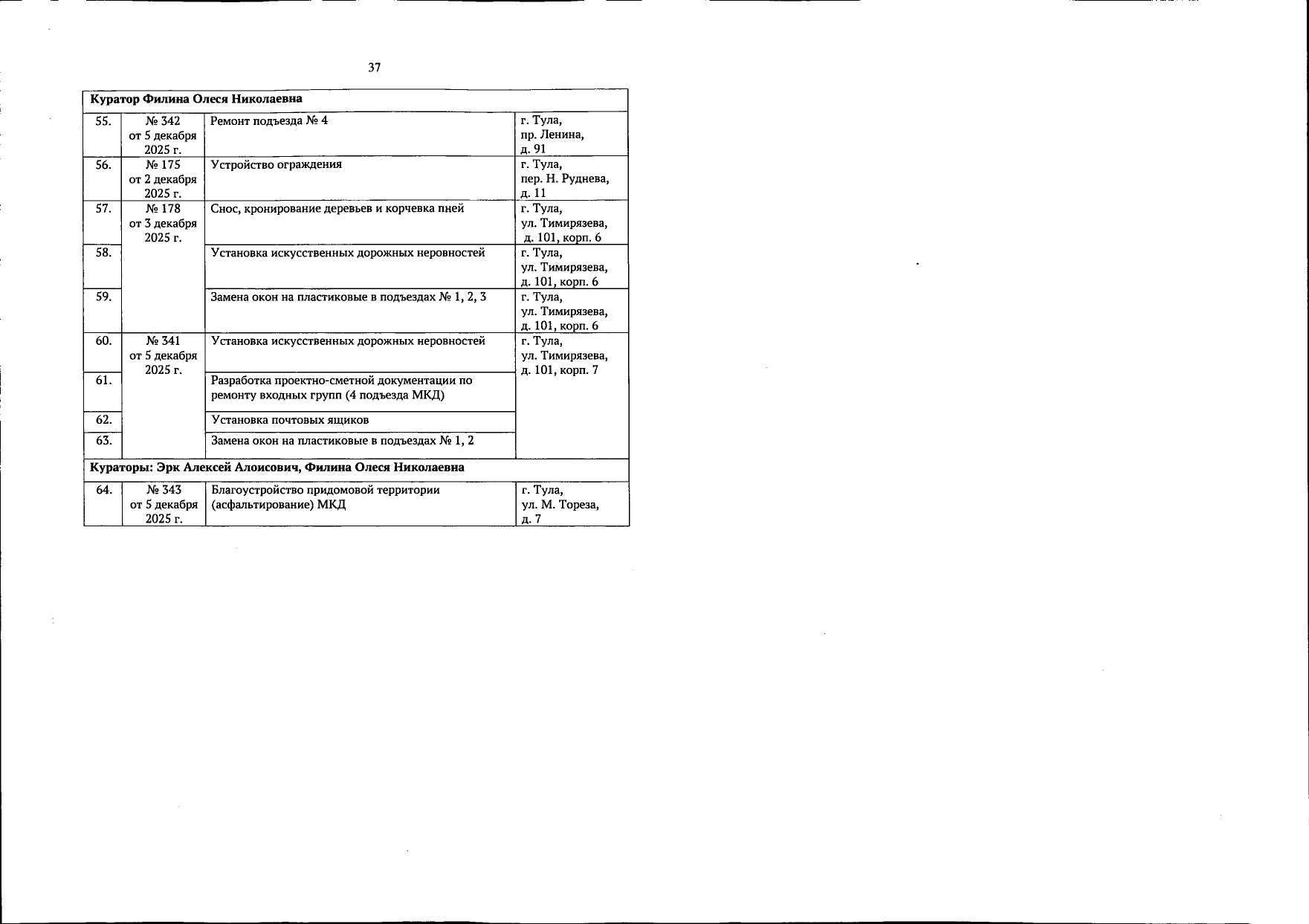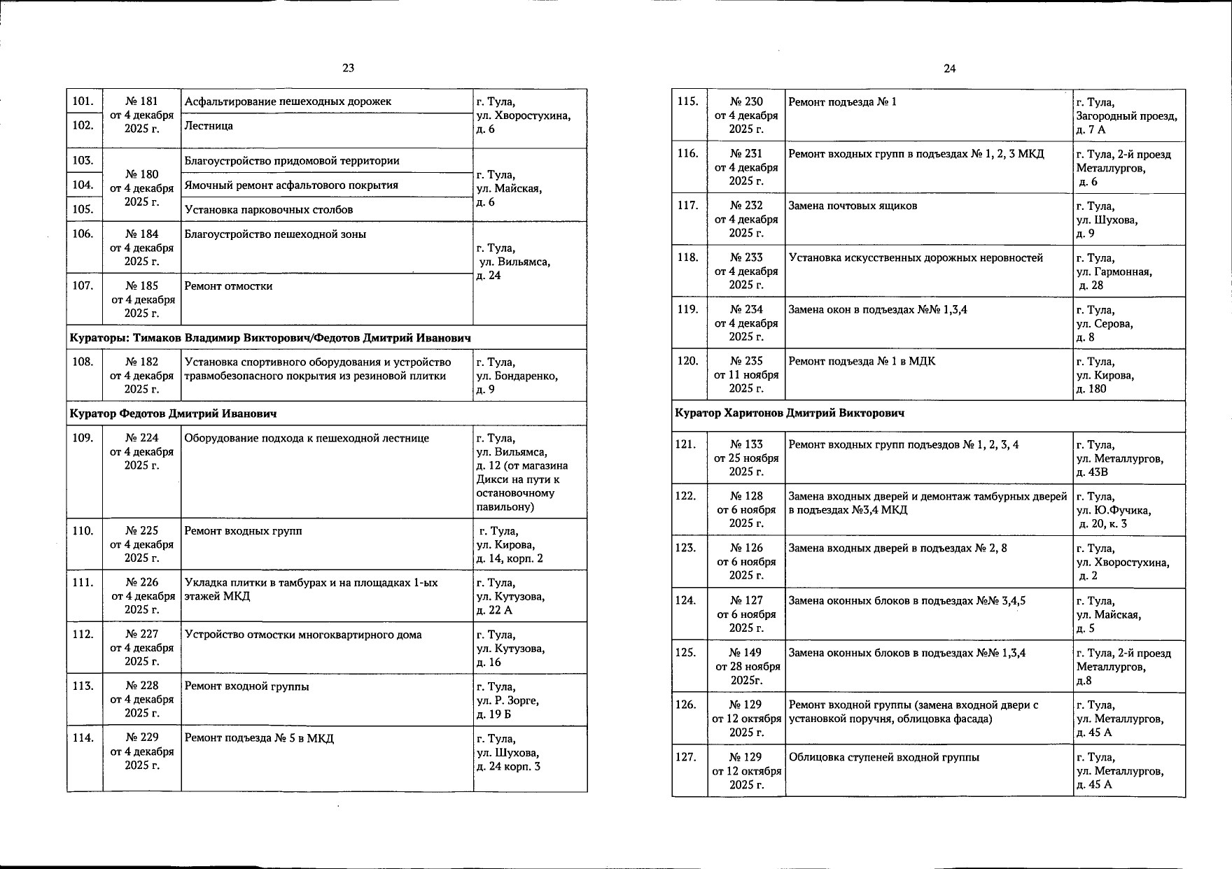 В галерее — список одобренных заявок, адреса и кураторы из числа депутатов городской Думы.