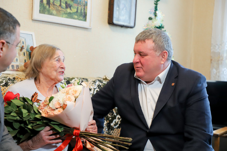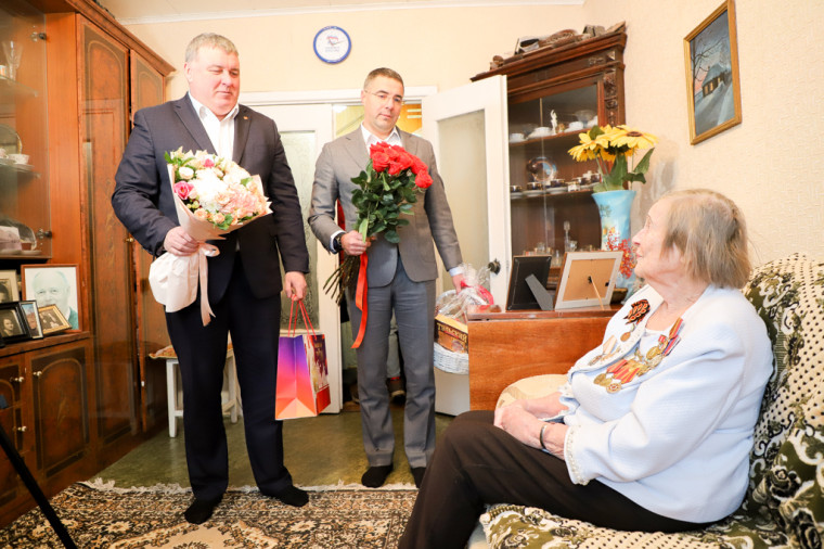 Руководители города передали ветерану цветы и памятные подарки.