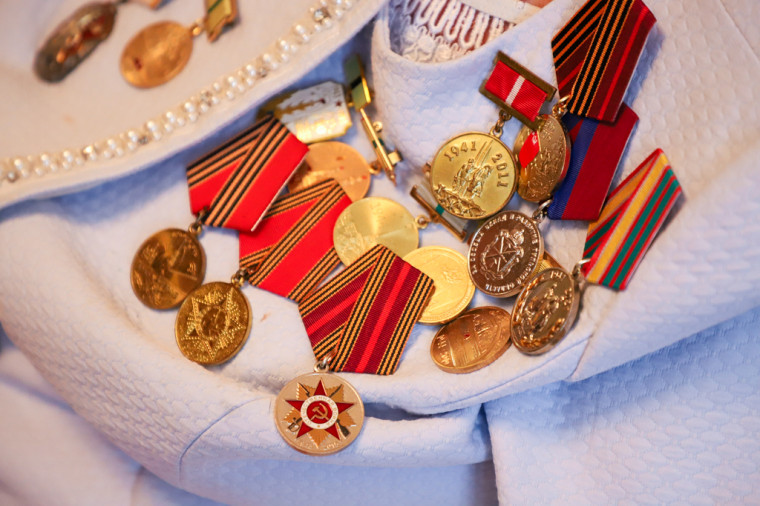 Руководители города передали ветерану цветы и памятные подарки.