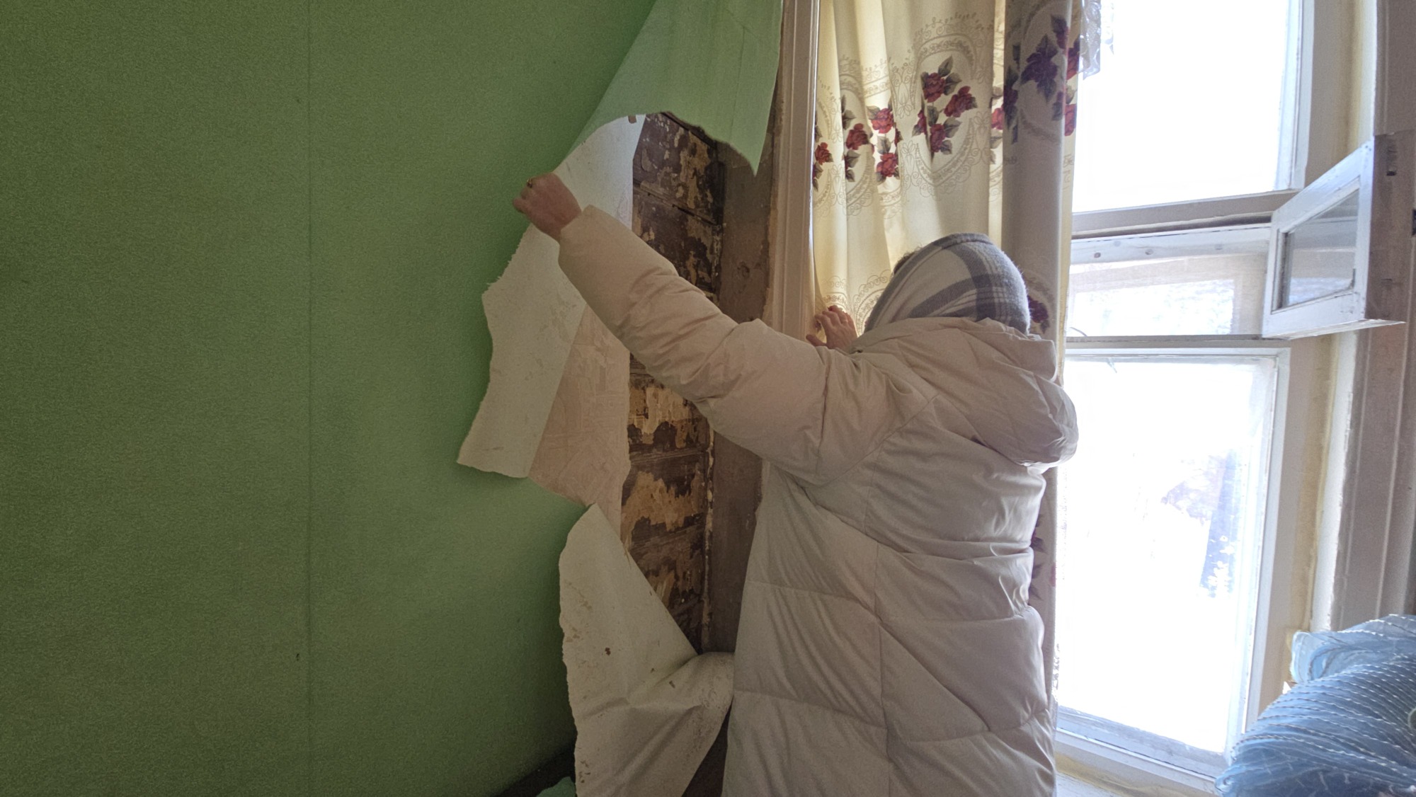 «Сразу посмотрите, какие полы? Все кривые. Что более или менее ровное – мы сами фанерой застилали, но и то, конечно, не помогло особо. Да и стены тоже все волнами пошли. Они деревянные: что фасад, что межкомнатные, — рассказывает Антонина и стучит по стене кулаком: — Там щели с палец появились, мы их пеной заделывали, чтобы воздух не гулял».