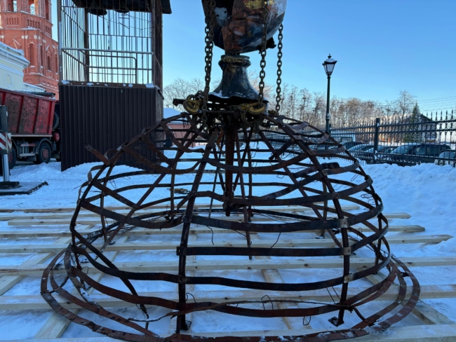 Корреспондент «Тульской прессы» запечатлел момент снятия сгоревшего купола для дальнейшей его реставрации.