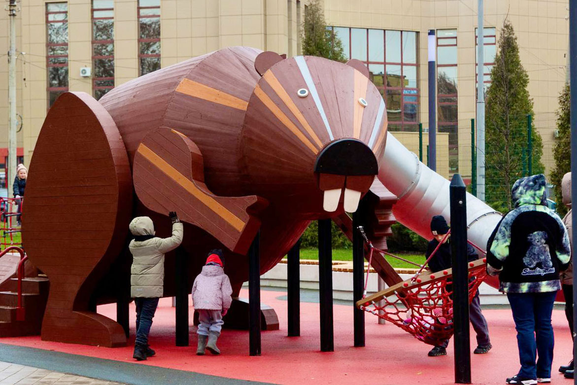 В сквере обновили Аллею звезд, установили сцену и модульные сиденья, качели, детские и спортплощадки, памп-трек. Особенностью общественного пространства стала фигура Бобра на детской площадке, которая отсылает к историческому прошлому Новомосковска.
