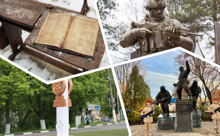 Он объединяет в себе скульптуру «Русский воин», звезду-триколор и четыре стелы, которые напоминают погоны бойцов.