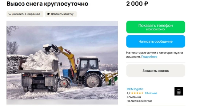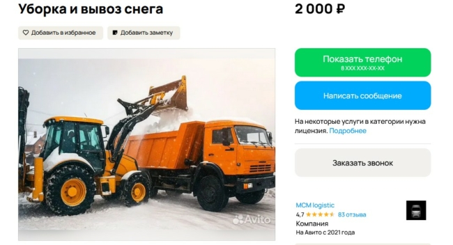 Объявление рассчитано в первую очередь на бизнес, но готовы работать и с частными лицами. Предлагается полный цикл зимней уборки — от расчистки территории до вывоза снега на собственные плавильные площадки. Исполнители работают официально, предоставляют документы, принимают наличный и безналичный расчет, в том числе с НДС. Также заявлена возможность срочного выезда техники 24/7 и гибкие условия аренды.