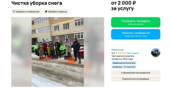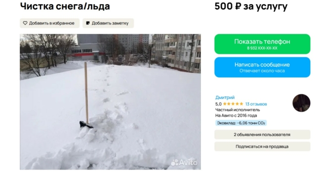 Но пока одни ждут коммунальщиков, другие решили превратить снежный коллапс в источник дохода. На сайтах бесплатных объявлений туляки массово предлагают услуги по уборке снега — от ручной расчистки дворов до высотных работ и вывоза снега спецтехникой.