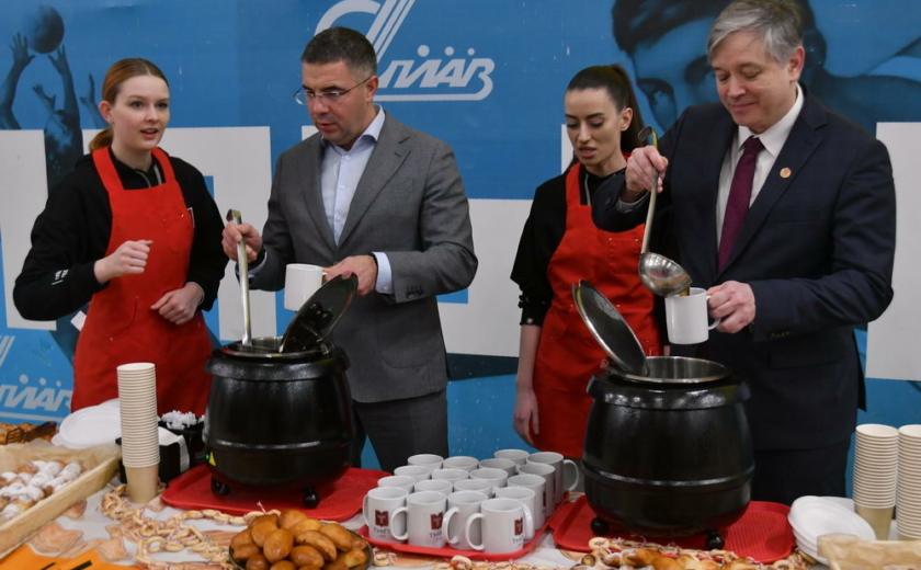 Завершили «Татьяниаду-2026» угощения от комбината общественного питания ТулГУ. Все смогли насладиться вкусом знаменитой сосиски по-русски, попить ароматного чая с выпечкой и отведать терпкого сбитня — легендарного напитка студентов. А разливали его по чашкам Олег Александрович Кравченко и Алексей Алоисович Эрк.