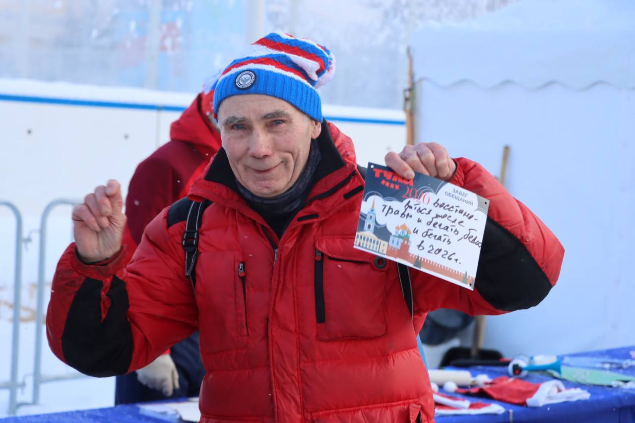 Участники забега преодолели дистанцию в 2,5 километра. Каждый из них получил специальный номер, на котором написал обещание на 2026 год.
