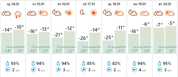 Как сообщили «Тульской прессе» в Центре по гидрометеорологии и мониторингу окружающей среды (ЦГМС), в ночь на 14 января -20 градусов зафиксировали в Алексине. В Суворове столбики термометра опустились до -19 градусов. В остальных же муниципалитетах пока средняя температура составляет -15…-17 градусов.