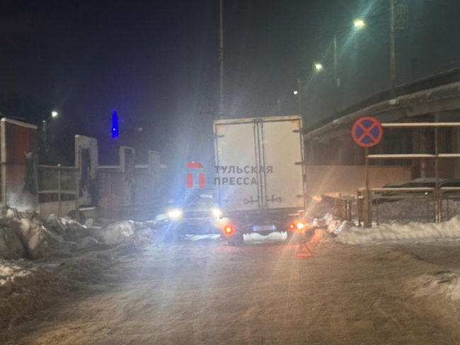 В Туле произошло ДТП с участием легкового автомобиля Hyundai и грузовика. Авария случилась под мостом в Заречье.