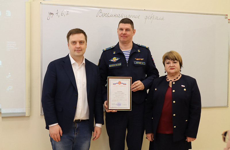 Суворовцам, отличившимся в учебе, творчестве и спорте депутаты вручили Благодарности. Благодарственными письмами Тульской областной Думы награждены преподаватели ТулСВУ.