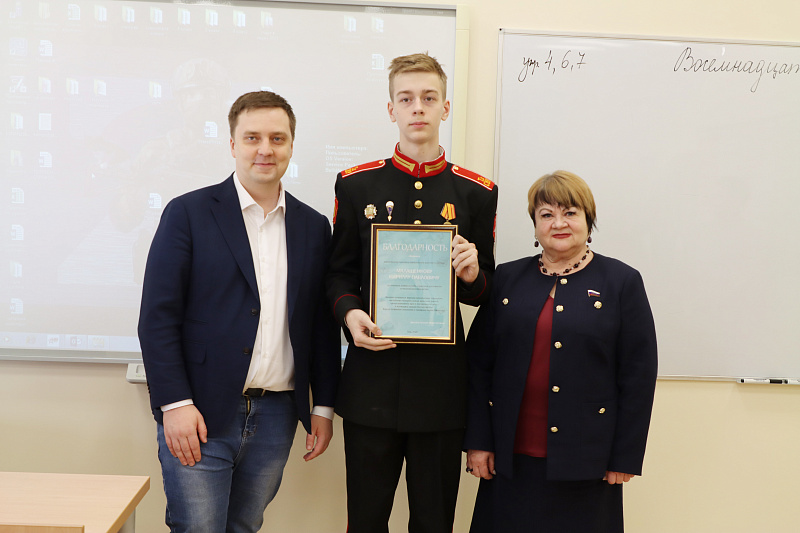 Суворовцам, отличившимся в учебе, творчестве и спорте депутаты вручили Благодарности. Благодарственными письмами Тульской областной Думы награждены преподаватели ТулСВУ.