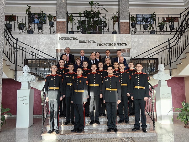 Председатель регионального парламента, член фракции «Единая Россия» Андрей Дубровский и депутаты Тульской областной Думы посетили Тульское суворовское военное училище, ознакомились с его работой, тренировочными площадками образовательного учреждения, провели для ребят Уроки мужества и наградили педагогический состав.