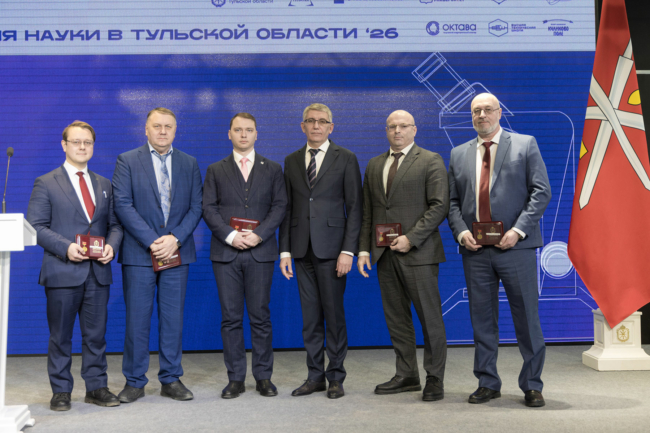 В «Октаве» Дмитрий Миляев наградил пятнадцать деятелей науки, которые получили звание лауреатов премии Тульской области в сфере науки и техники имени Б. С. Стечкина и К. Д. Ушинского за 2025 год. Среди них — кандидат психологических наук ТГПУ имени Л. Н. Толстого Наталия Степанова, кандидат технических наук Российского химико-технологического университета имени Д. И. Менделеева Артем Колесников, профессор кафедры «Радиоэлектроника» ТулГУ Евгений Минаков, а также сотрудники промышленных и оборонных предприятий.