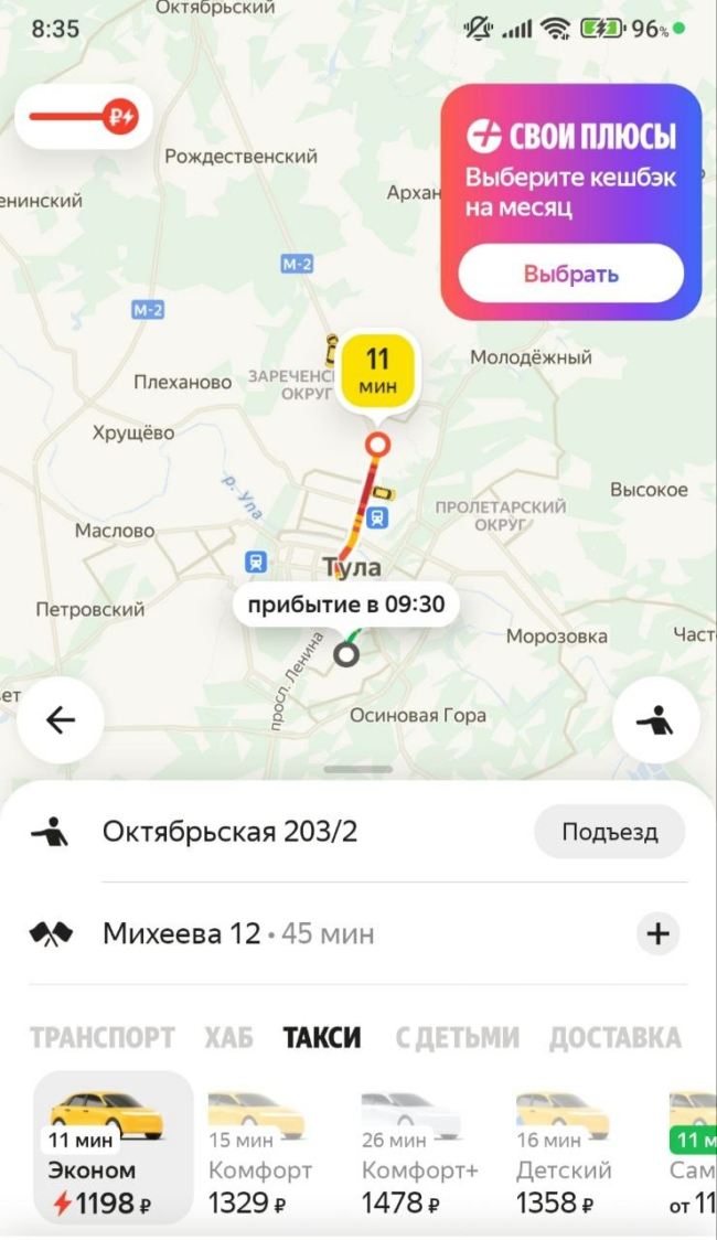 Корреспондент «Тульской прессы» проверил расценки в популярных агрегаторах (везде брали тариф «Эконом»). Результаты неприятные, хоть и неудивительные: доехать от улицы Октябрьской до Михеева предлагают за 1300 рублей. Практически столько же стоит билет на поезд до Санкт-Петербурга.