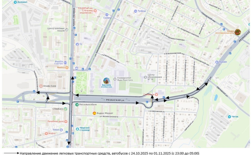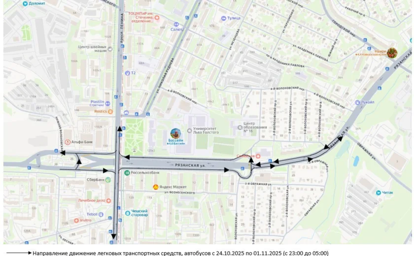 Проезд для всех видов транспорта будет закрыт каждую ночь — с 23:00 до 06:00. Причина — реконструкция путепровода.