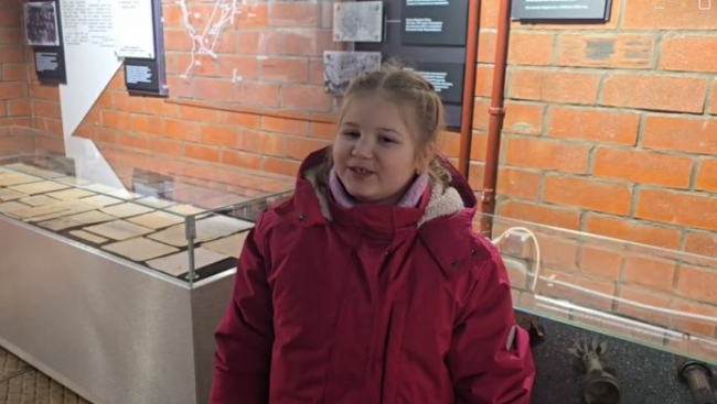 Ульяна активно изучала экспонаты музея, высматривая каждую деталь моделей поездов. На выставке были представлены не только «поездные» предметы: в одной из витрин лежала каска солдата времен Великой Отечественной войны и осколки снарядов – ей они понравились больше всего.