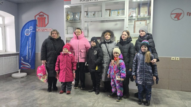 Второе праздничное мероприятие прошло на территории АО «Желдормаш». Для членов семей сотрудников предприятия, ушедших на фронт, организовали специальную экскурсию. Три семьи вместе с детьми смогли своими глазами увидеть, какую работу ежедневно выполняют их папы, мужья и сыновья.