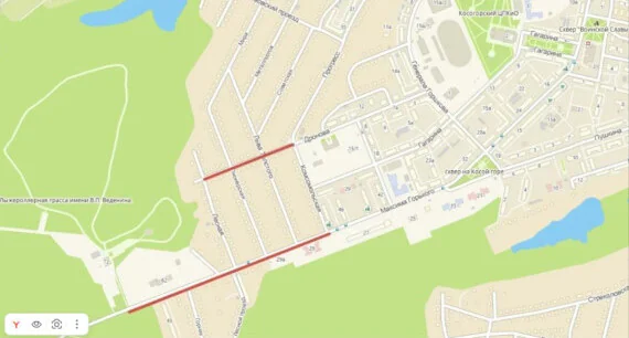 - ТЦ «Атак» (улица Пушкина, 26а, к. 1) – улица Демешковская – улица М. Горького – лыжероллерный центр «Веденино»;