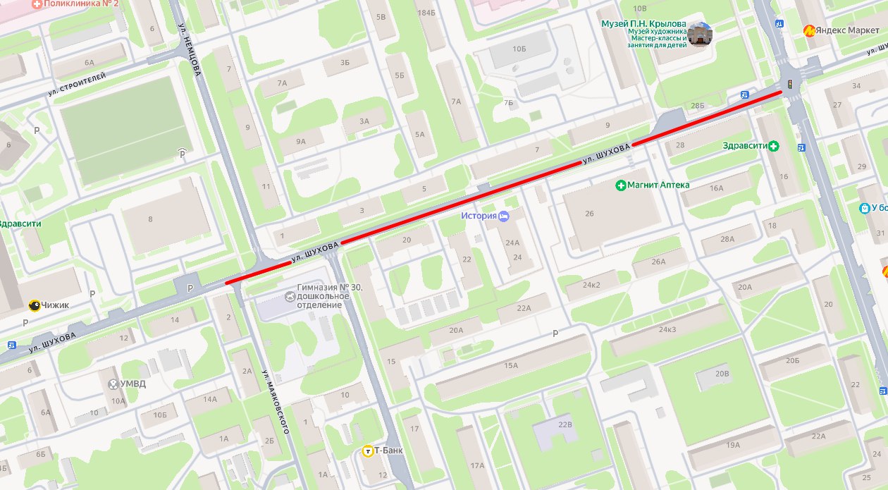 Ограничение будет действовать с 21:00 3 февраля до 05:00 4 февраля на участках улиц Шухова, Ю. Фучика, Г. Маргелова, 1-го проезда Расковой и 2-го проезда Гастелло.