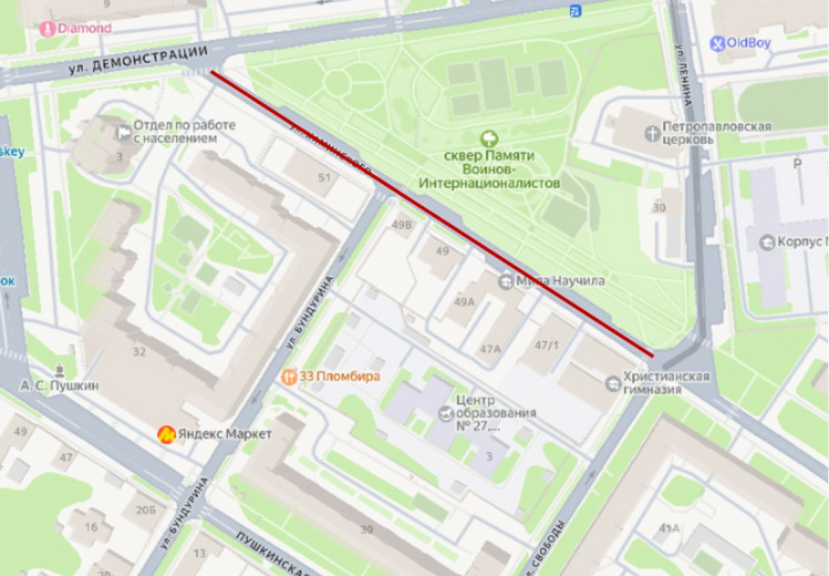 С 23:00 13 февраля до 12:00 14 февраля на участке от улицы Ленина до улицы Демонстрации запретят остановку и стоянку любого транспорта.