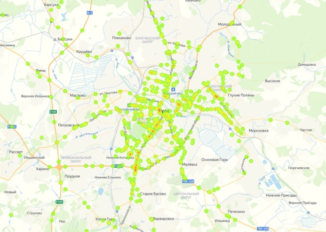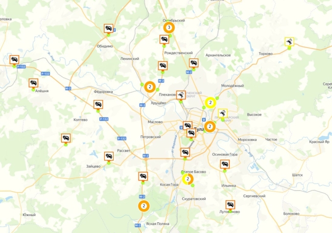 На сайте спецпроекта «Индекс БДД» опубликована карта дорожно-транспортных происшествий в Туле, Новомосковске и Щекине.