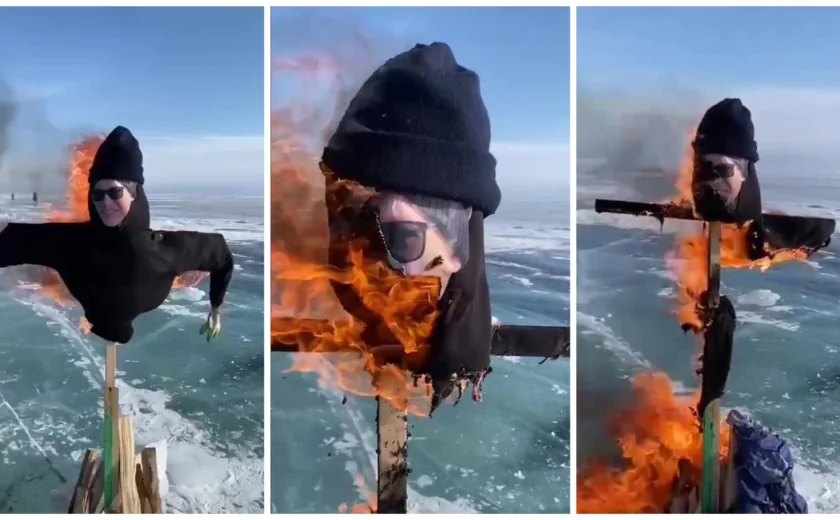 В последний день Масленицы на Байкале сожгли чучело с лицом уроженца Тульской области Ярослава Дронова (известного как SHAMAN).