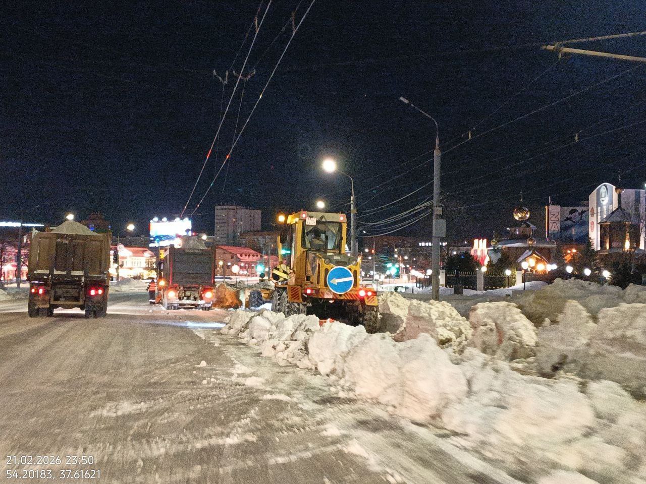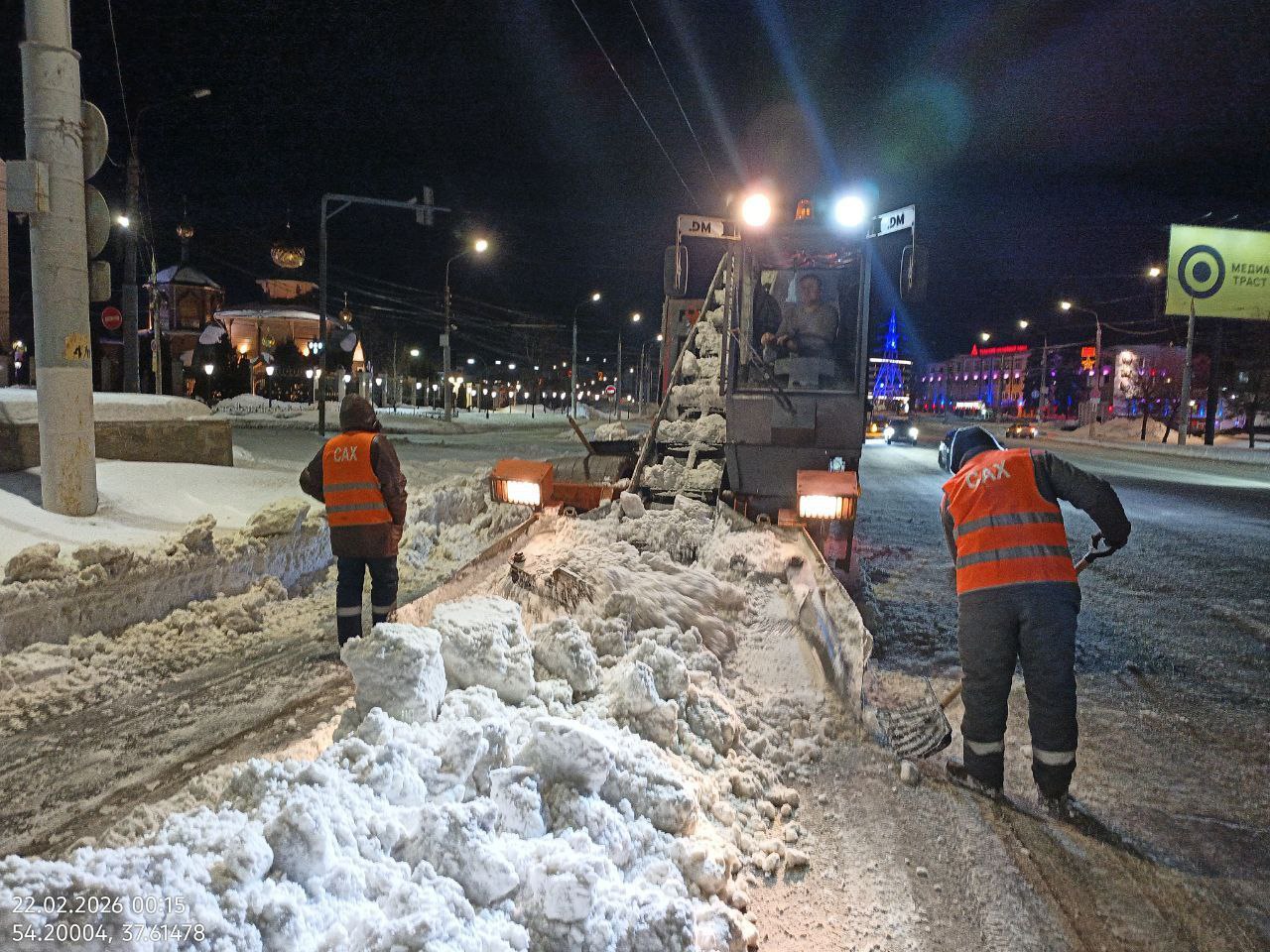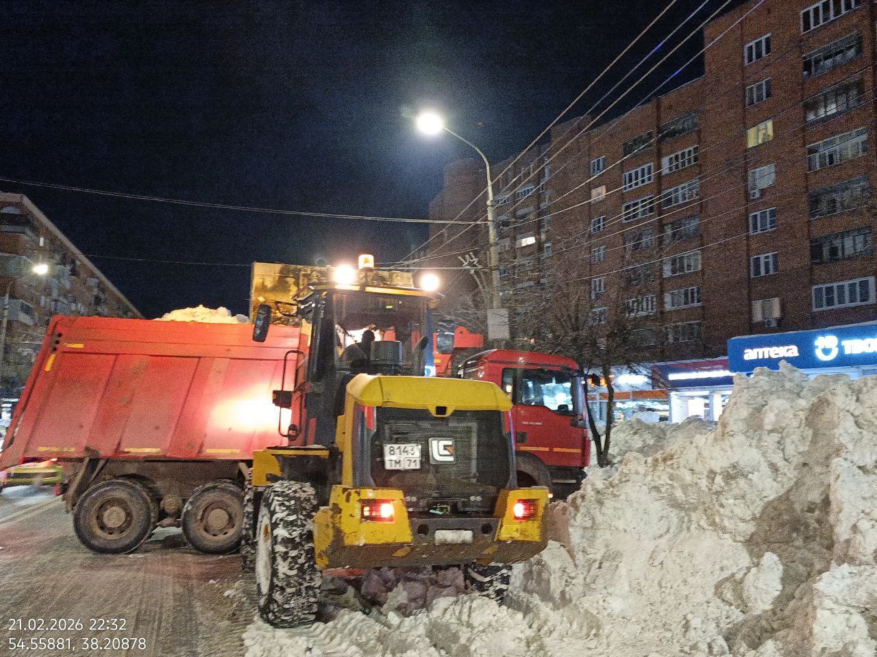 Ночью с улиц города было вывезено 4,9 тысячи кубометров снега. Работы проводились на Зареченском мосту, Денисовском и Благовещенском переулках, площади Ленина и улицах Менделеевская, Замочная, Советская и Степанова. Днем работы выполняются на Московском путепроводе и Красноармейском проспекте.
