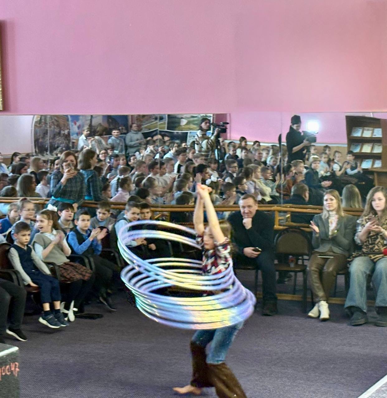 С учениками школы провели интерактив: показали цирковой реквизит, дали попробовать себя в роли артистов и поделиться эмоциями от выступления.