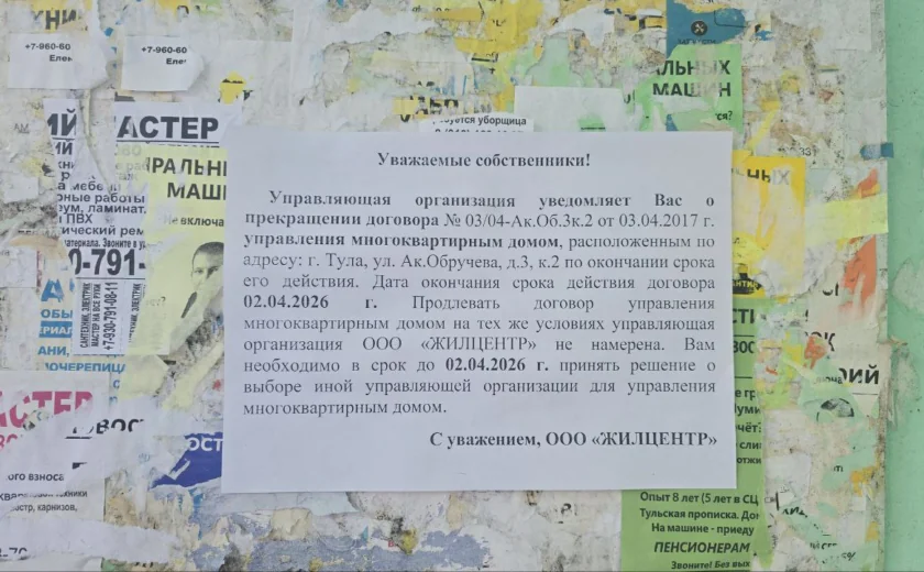 Жители дома №3к2 по улице Ак. Обручева удивились, увидев объявление у одного из двух подъездов своей девятиэтажки: там указано, что собственникам нужно как можно быстрее выбрать новую управляйку, ведь текущая «Жилцентр» от них отказывается и «продлять договор на тех же условиях не намерена».
