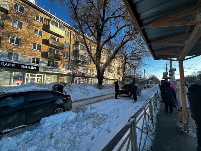 Однако далеко женщина уехать не смогла — машина застряла, тем самым остановив движение трамвая-челнока.